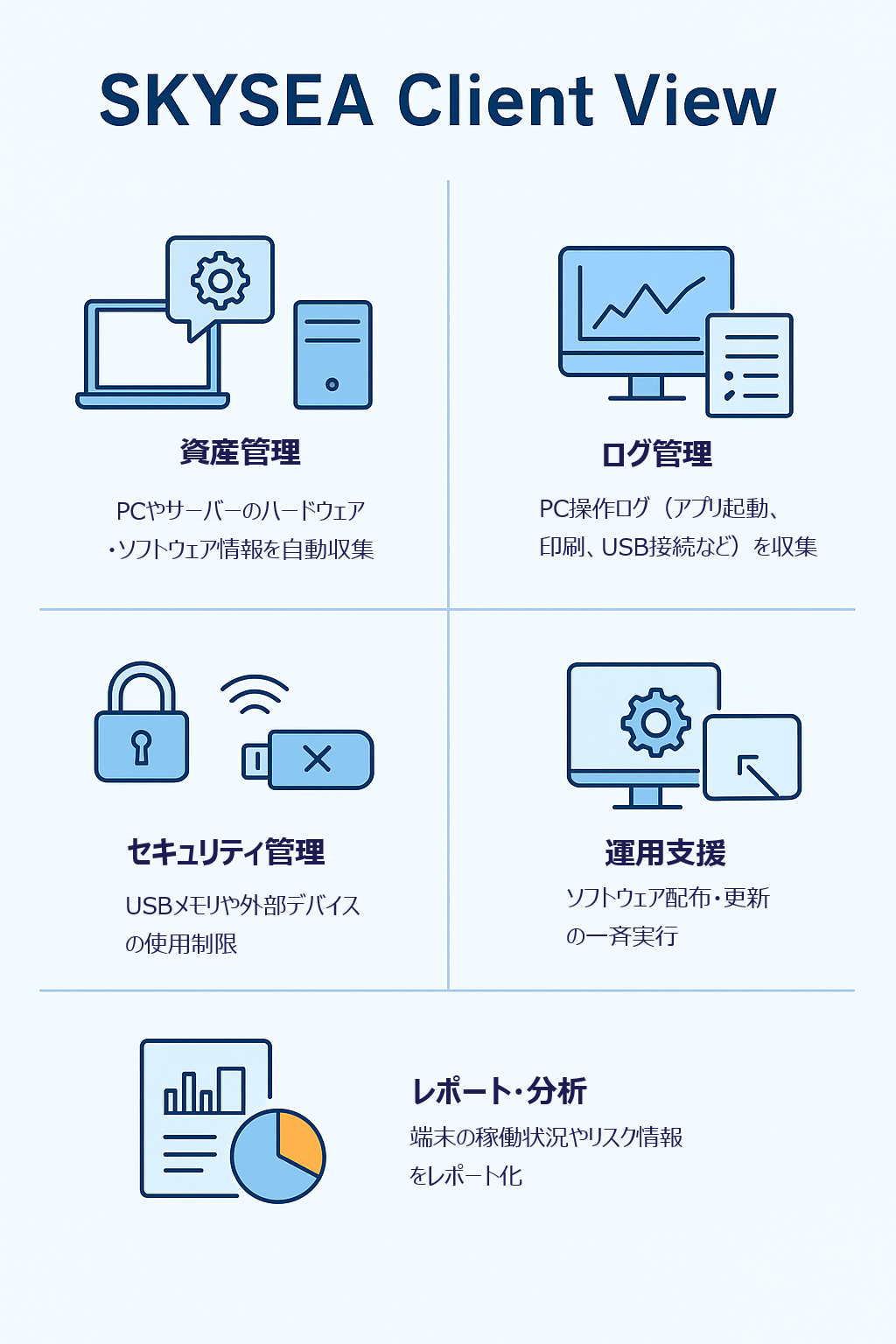 今回は、そんなSKYSEA Client Viewの主要な機能を、ざっくりと紹介していきます。