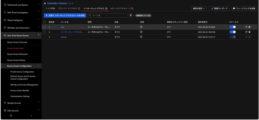 ZERO TRUST SECURE ACCESS > Secure Access Rules > インターネットアクセス > 汎用インターネットアクセスルールを作成を選択