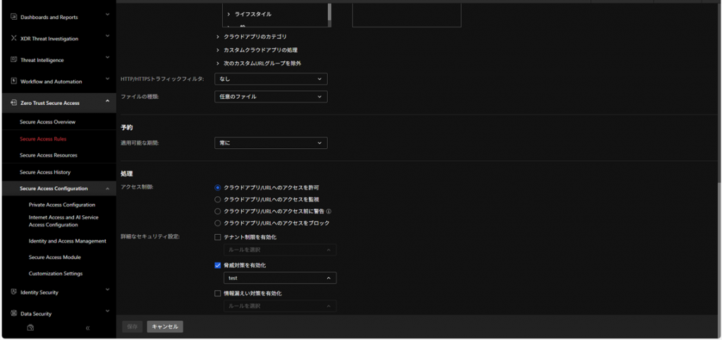 ZERO TRUST SECURE ACCESS > Secure Access Resources > 脅威対策 > 追加を選択